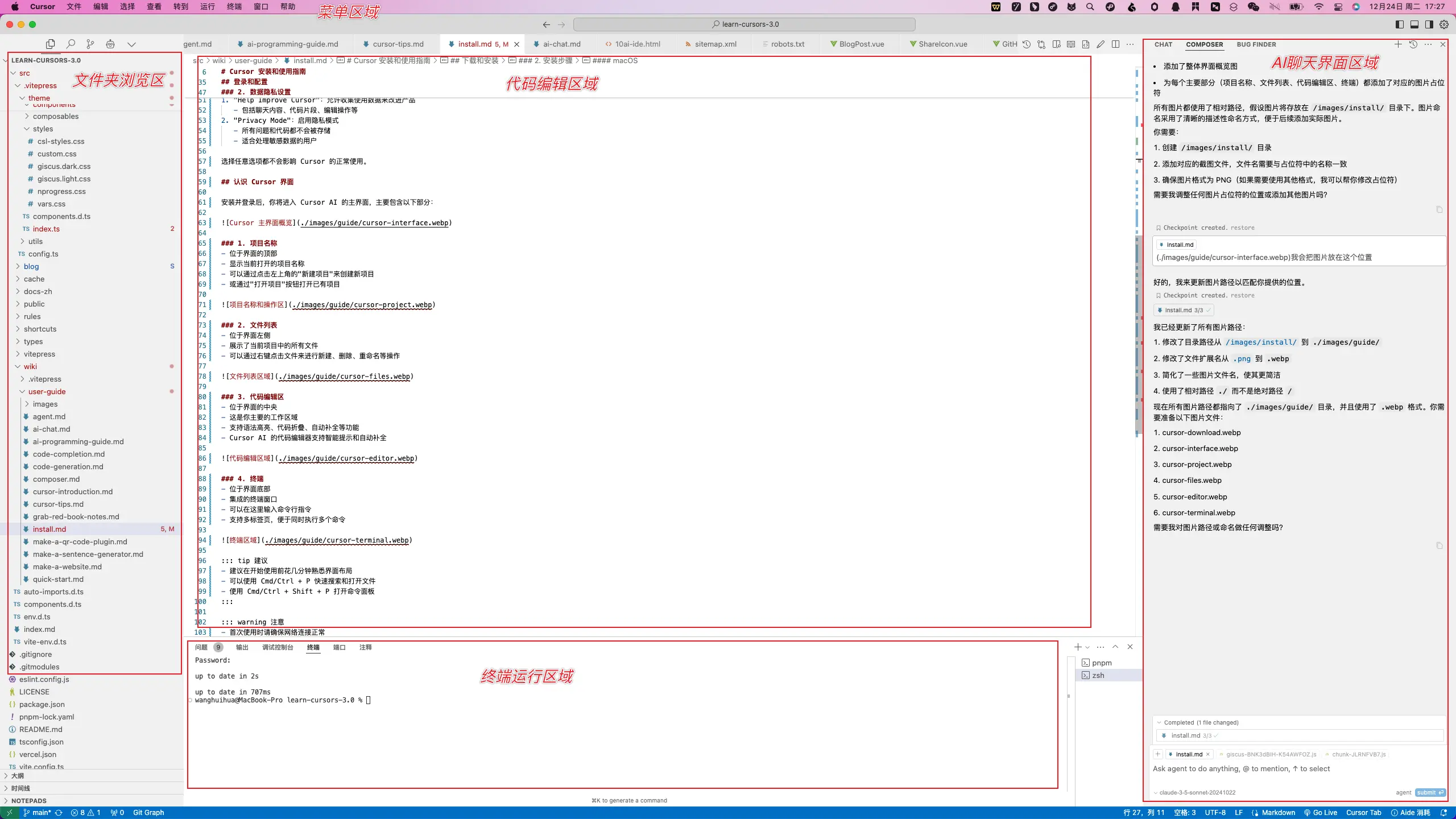 成功安装并登录 Cursor 软件后,您将进入其主界面,该界面主要由以下几个重要部分构成: